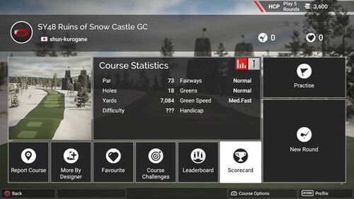 ⇒The Golf Club 2プレー日記まとめに戻るPS4『ザ ゴルフクラブ2』プレイ日記 第28回となる。今回のコース紹介は「SY48 Ruins of Snow Castle GC」雪の丘陵コース。城の遺跡らしきものもある。5番ホールはパー6のホールとなっている。そのため合計パーは73…