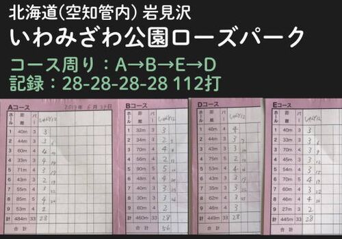 今日はやや小雨、どんよりとしていた中、何とかパークゴルフが出来た。場所は北海道空知地方、岩見沢市、ローズパークPG場。結果は上の通り4コースとも28で上がり、112打となった。コースの組み合わせにもよるが、同コースのマイベストスコア更新!A・B・E…