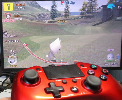 みんゴル6についてです。 Vita時代にユウナでVS2、即ち裏アイザックを倒したことがあります。 今回はトロスタスタでホリパッドコントローラ(このためEXPショット不可)を使い、裏アイザックに挑んでみます。 画像引用・出典 みんなのゴルフ6 PS3版 (C)2012…